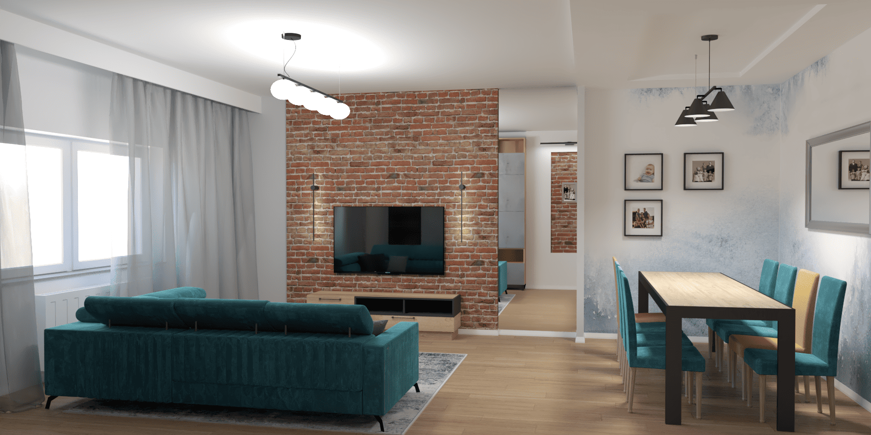 Po 2 wizualizacje każdego pomieszczenia + 2 serie poprawek. Dopiero po ich zatwierdzeniu przechodzimy do rysunków technicznych.
