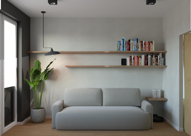 To wnętrze powstało z myślą o konkretnych potrzebach. Właściciel – zdecydowany, konkretny, z zamiłowaniem do elektroniki i technologii – chciał przestrzeni, która nie będzie „ugładzona” ani kompromisowa. Miało być nowocześnie, wygodnie i po męsku. Tak właśnie powstała przestrzeń pełna nasyconych barw, industrialnych struktur i przemyślanych rozwiązań.